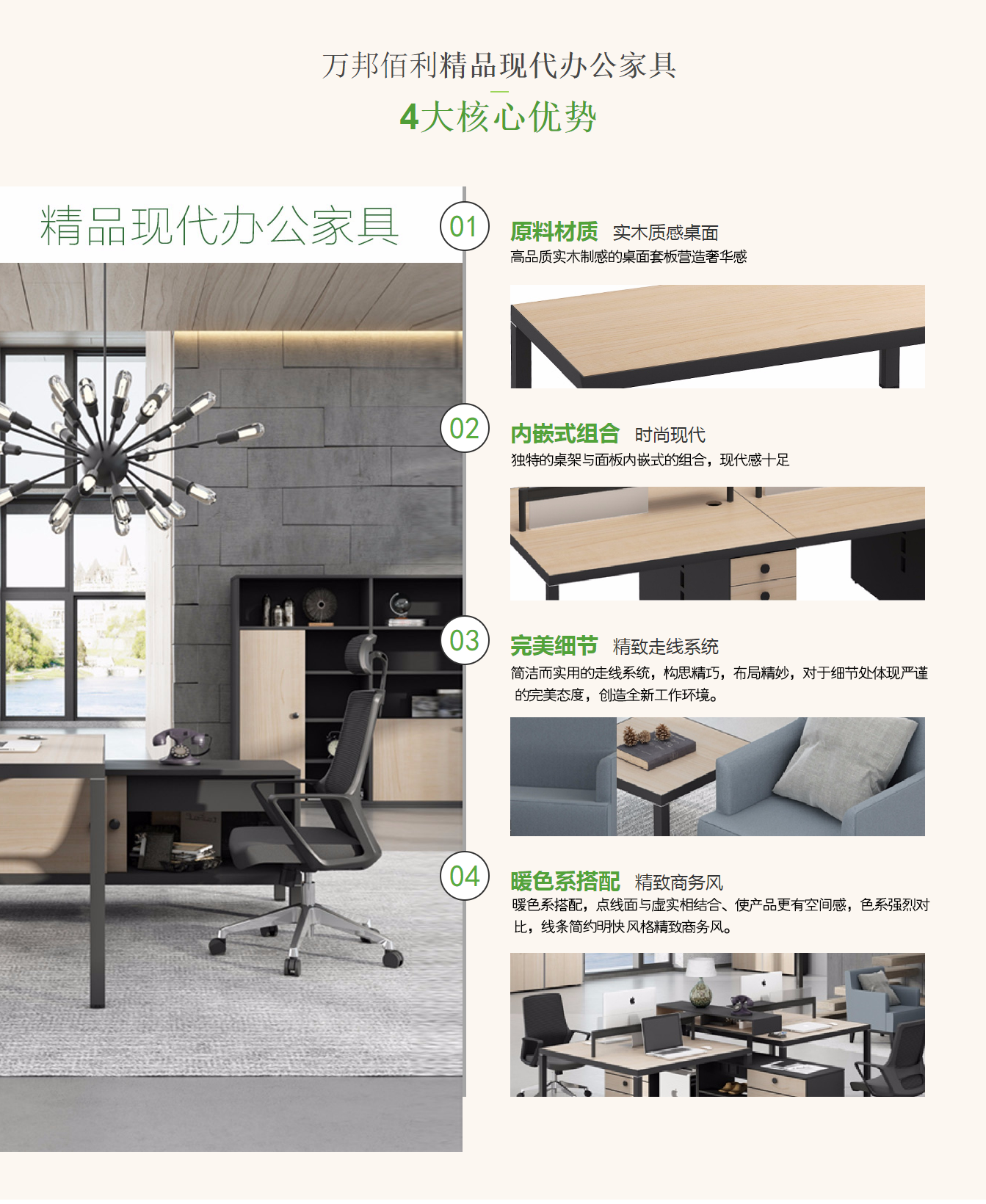 北京萬邦佰利家具有限公司是一家專注于辦公家具生產(chǎn)、批發(fā)銷售的公司。銷售的產(chǎn)品有:班臺、經(jīng)理桌椅、會議桌椅、員工桌椅、文件柜、密集柜、視屏?xí)h桌、辦公沙發(fā)、學(xué)校家具、銀行家具、戶外家具、醫(yī)院家具等產(chǎn)品,公司自成立以來始終堅持以人才為本、誠信立業(yè)的經(jīng)營原則,堅持用企業(yè)文化提升企業(yè)核心競爭力,使企業(yè)在發(fā)展中處于良好的形象.我公司主要服務(wù)于企業(yè)單位的家具定制服務(wù),為各大企業(yè)量身定做整體環(huán)境的家具設(shè)計全程服務(wù),我們的整體產(chǎn)品服務(wù)...